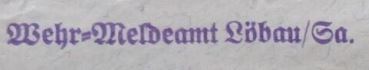 Dienststempel des Wehrmeldeamtes Löbau aus dem Jahre 1936 Quelle: Sammlung Günter Vogel |