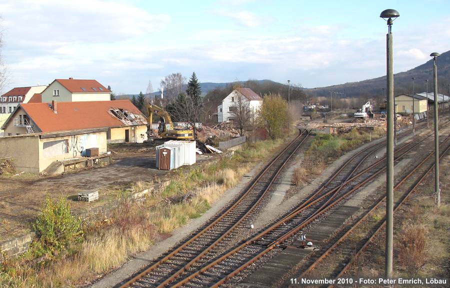 | Gebäude von Bahnbetriebswagenwerk, Wagenmeister und Betriebsküche sind breits niedergerissen. |