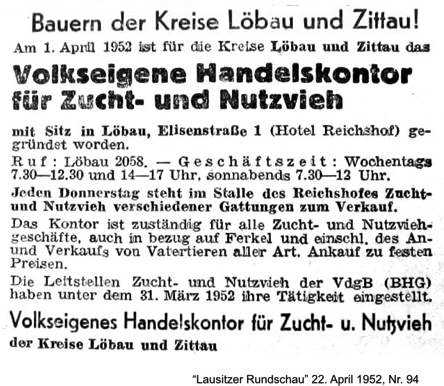 | Handelskontor für Zucht- u. Nutzvieh im Hotel Reichshof, 1952 | ||||||||||||||||||||