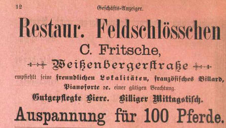 1861 erbaut als Restauration zum Feldschlösschen, |