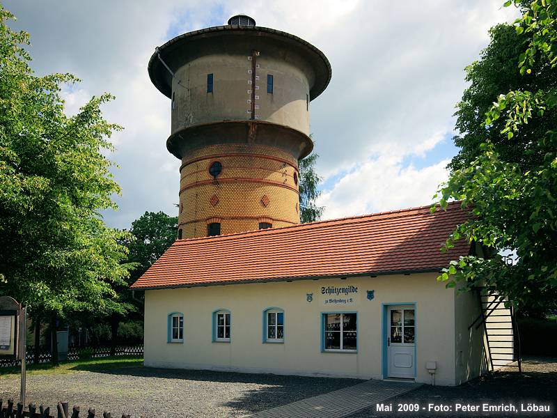 Der Wasserturm wurde 1904 fertiggestellt und ist heute außer Betrieb. Das Haus der Schützengilde diente als "Zielerhaus" bei Schießübungen.